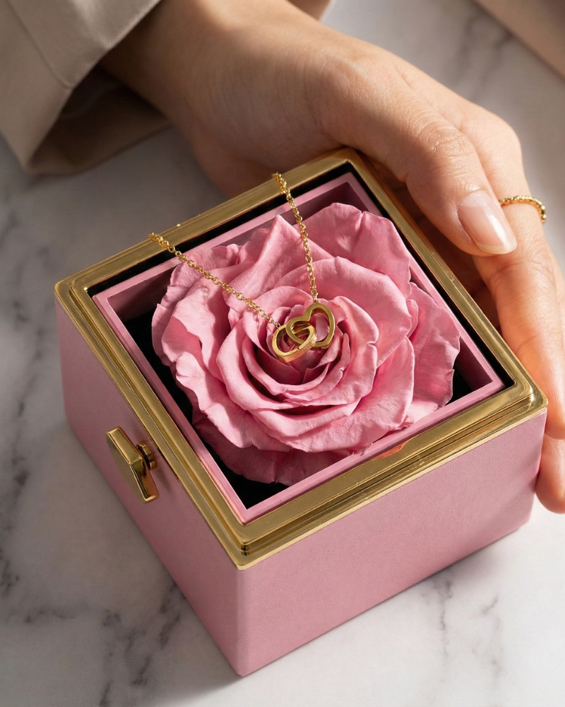 Ikuisen ruusun lahjarasia kaksoissydänkaulakorulla